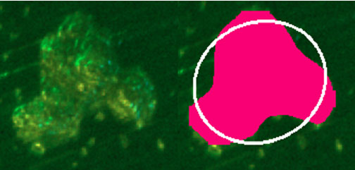 Red, Green & Blue light illumination method from Eyecon2 where the boundary from one particle to the next can be easily identified when compared to other methods of black-and-white image processing.